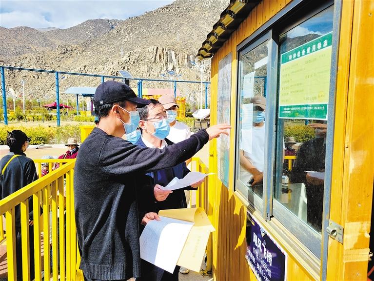 圖為(wei) 拉薩市市場監督管理局執法人員在遊樂(le) 場等客流量集中的場所進行抽查。