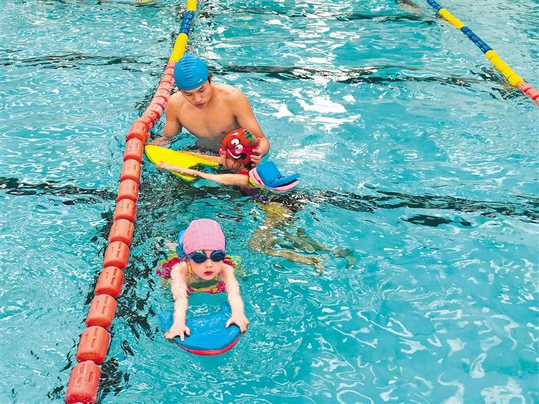 圖為(wei) 青少年兒(er) 童在教練的指導下學習(xi) 遊泳。