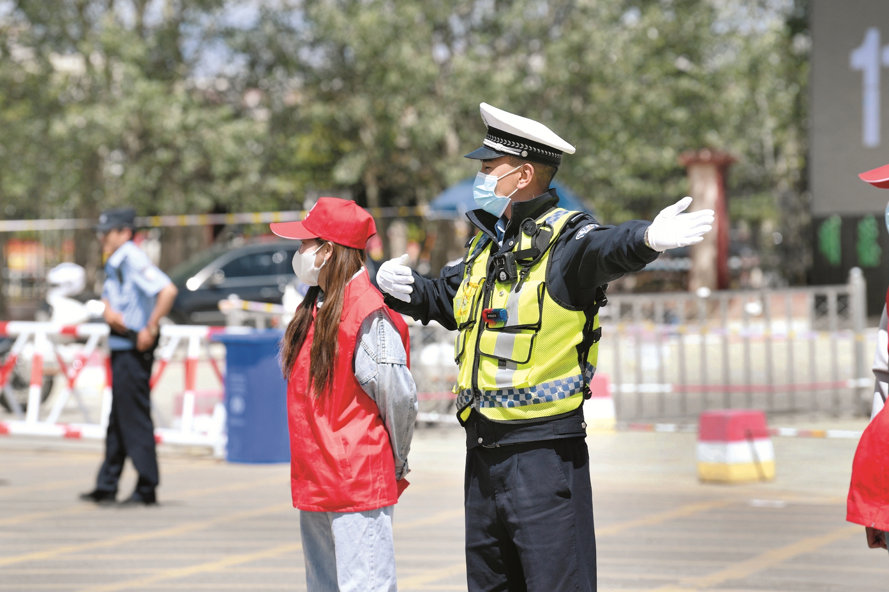 7日上午8時左右,記者來到拉薩北京實驗中學看到,交警已在現場部署警力,維護考場周邊道路交通秩序,校門口拉起了警戒線,預留出了考生進場通道。一批又一批考生在班主任的帶領下有序排隊,經過體(ti) 溫測量、查驗證件後有序進入考場。