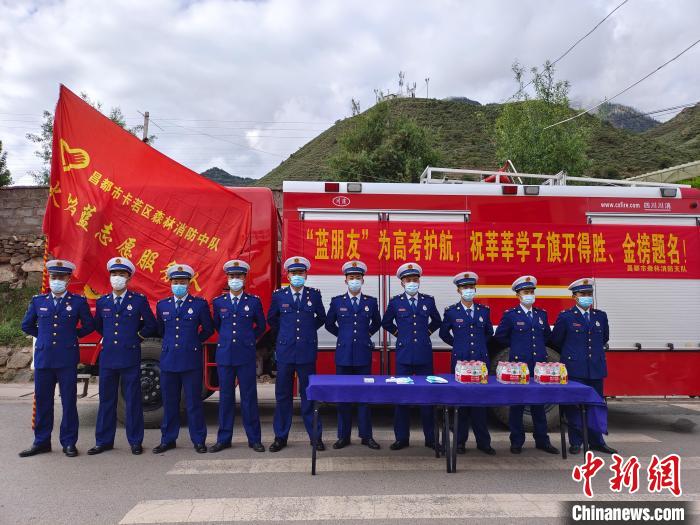 圖為(wei) 消防指戰員為(wei) 考生送去暖心“大禮包”。卡若區森林消防中隊 攝