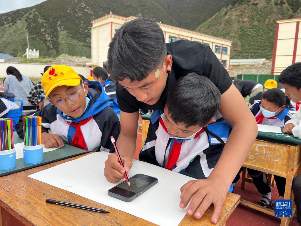 西藏大學藝術學院大三學生曲西說:“平時在學校都是按手機裏的照片臨(lin) 摹,很少有機會(hui) 走出教室麵對大自然、麵對孩子們(men) ,畢業(ye) 後我要回到自己老家昌都左貢縣當一名美術老師,教學生們(men) 畫畫。”