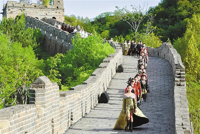 塔耶梅朵美育培養(yang) 中心的學員們(men) 在長城上走秀。