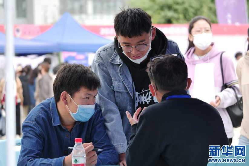 6月15日,應屆畢業(ye) 生在招聘會(hui) 現場。新華網 旦增努布攝