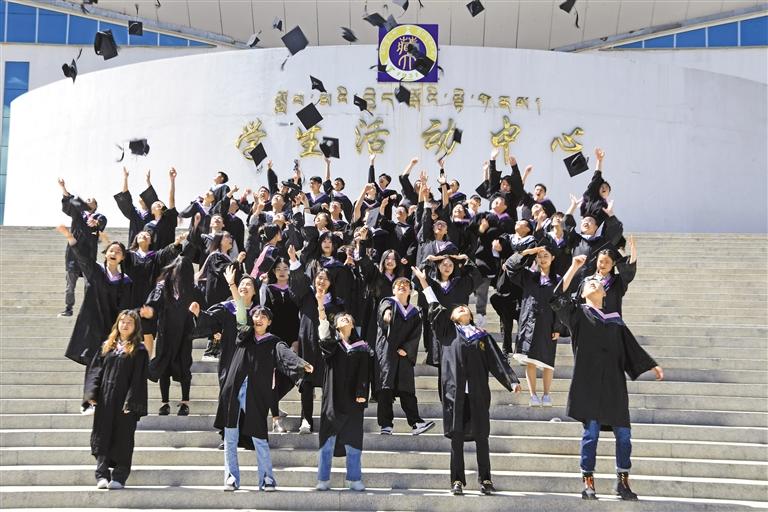 圖為(wei) 西藏大學文學院本科畢業(ye) 生在學校拍攝畢業(ye) 照。記者 王敏 攝