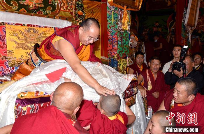 6月17日,班禪為(wei) 小活佛摸頂賜福。中新社發 李林 攝