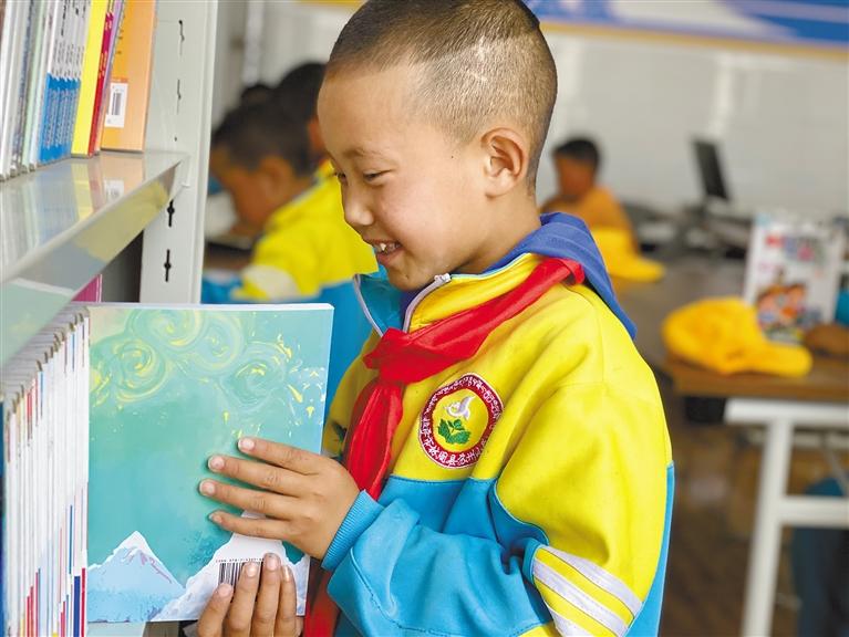 在蘇州援建的蘇萱圖書(shu) 室內(nei) ,林周縣蘇州小學學生正在挑選自己喜歡的讀物。