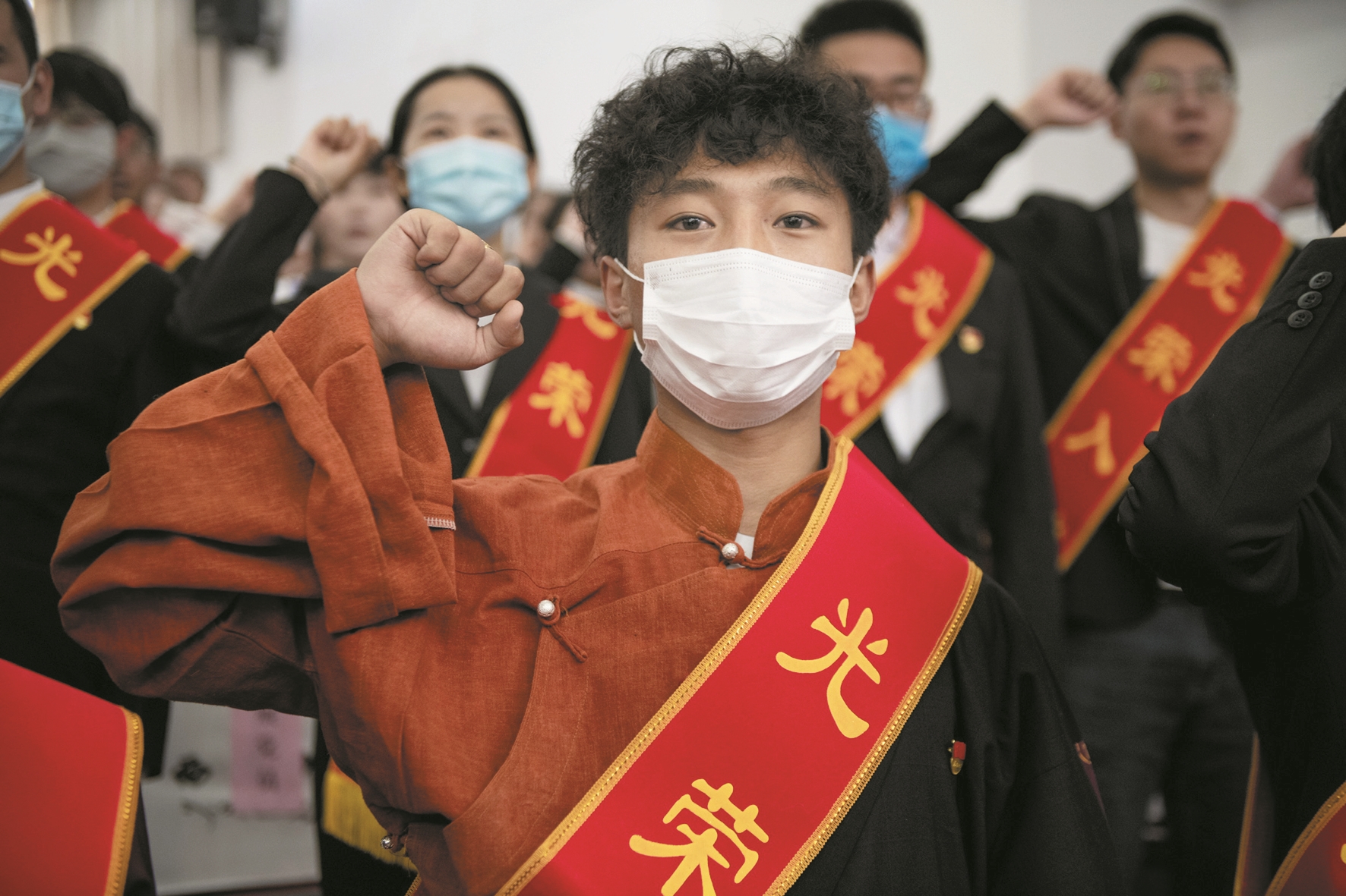 圖為(wei) 西藏大學理學院19級新入黨(dang) 學生拉巴平措在黨(dang) 旗前莊嚴(yan) 宣誓。拉薩融媒記者 玉珠多傑攝