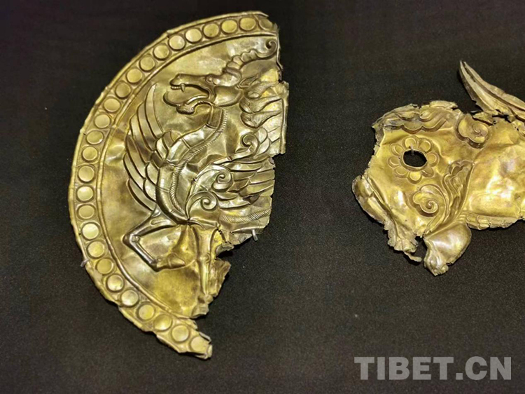 圖為(wei) 青海都蘭(lan) 熱水2018血渭一號大墓出土的鎏金飾片