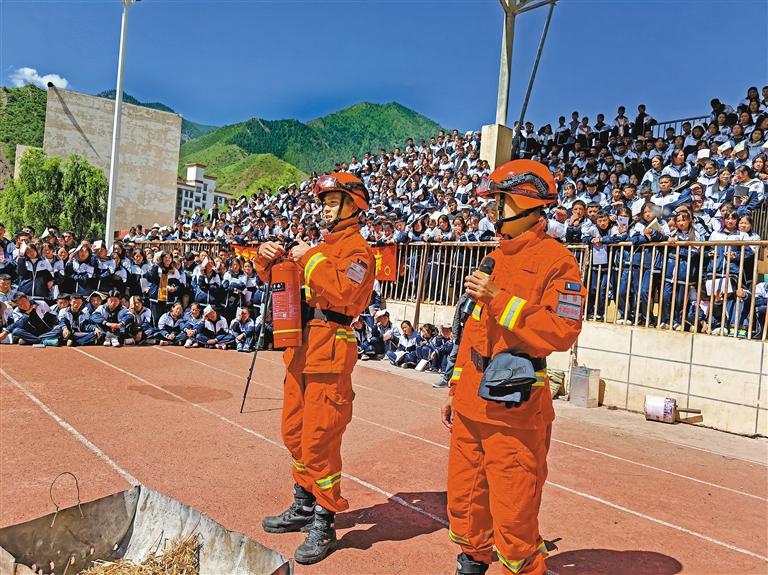 為(wei) 進一步普及消防安全知識,最大限度減少災害事故造成的損害,提高學校師生的消防安全意識,近日,昌都市森林消防支隊卡若區中隊前往昌都市第五、第六高級中學進行了消防安全教育。活動中,消防宣傳(chuan) 員從(cong) 認識火災、火災處置、學習(xi) 知識、自我保護四個(ge) 方麵,詳細地講解了日常生活中需要掌握的消防安全知識及如何撲救初期火災、如何逃生自救等常識。