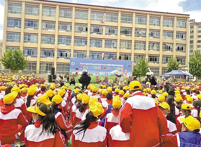 自2019年開始,娘熱小學大力開展“非遺進校園”活動,充分利用娘熱民間藝術團的良好資源,相繼把國家級非物質文化遺產(chan) 代表作藏戲、朗瑪、卡爾魯的基本動作編排成學校特色教育,在全校各班級進行推廣。