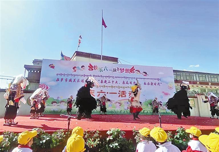 娘熱小學藏戲興(xing) 趣班的孩子參加拉薩市相關(guan) 演出活動。
