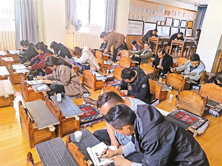 “我們(men) 學校組織過幾次書(shu) 法比賽,還選取了一些較好的作品裝訂成書(shu) ,發放到每個(ge) 班級供學生們(men) 參考。這樣一來,很多學生在書(shu) 上看到別人的照片和書(shu) 法作品時,能夠激發他們(men) 對書(shu) 法的興(xing) 趣和書(shu) 寫(xie) 的積極性。現在,參賽的學生越來越多了。”娘熱小學副校長拉巴介紹,在教育改革以及學校“雙減”工作和課後服務的背景下,娘熱小學積極探索,結合本校實際情況,開設了藏戲、藏文書(shu) 法、校園足球等三大特色板塊。2019年,拉薩市文聯、曲藝家協會(hui) 以及書(shu) 法家協會(hui) 分別授予娘熱小學曲藝、舞蹈、藝術教育培訓基地和書(shu) 法教育培訓基地稱號,極大提高了師生的學習(xi) 積極性。