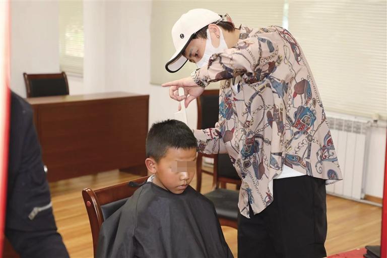 理發師為(wei) 殘疾學生理發。圖由西藏阜康天使基金會(hui) 提供