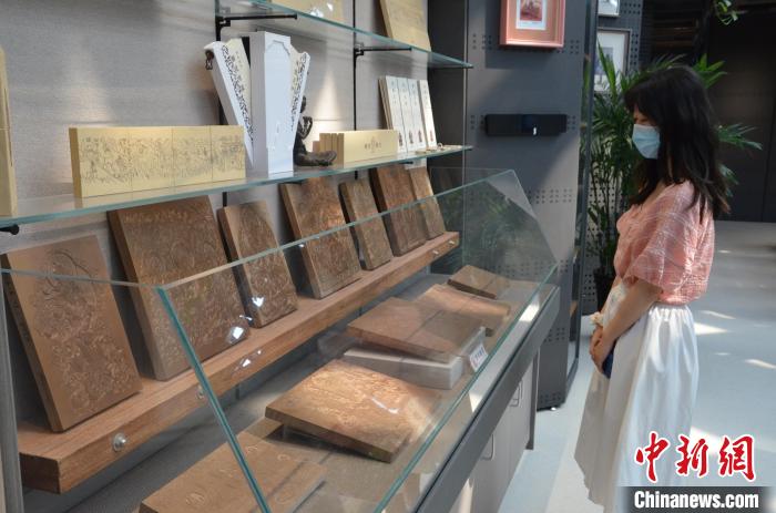 圖為(wei) 參訪人員在工作室參觀敦煌題材木刻版畫。 李亞(ya) 龍 攝