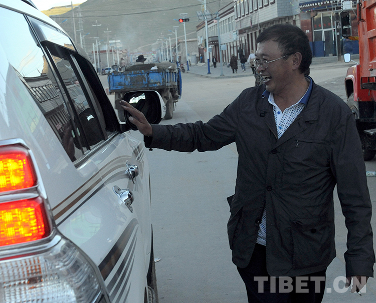 這是時任班戈縣副縣長李正斌在縣城街頭與(yu) 乘車熟人打招呼(唐召明2012年8月2日攝)