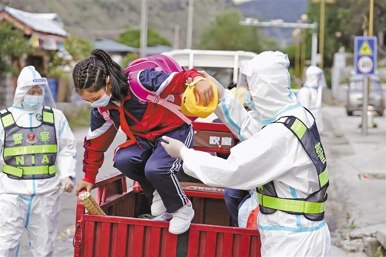 9月17日,林芝市米林縣派鎮中心小學開學的第一天,林芝邊境管理支隊派邊境派出所啟動“護校崗”工作機製,聯合學校工作人員開展護學,實行“一警一帶”,家長即送即離,由民警負責將住校學生行李送往宿舍,盡量減少人員接觸,確保入學有條不紊進行。