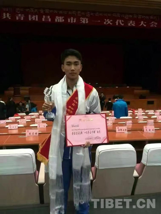 圖為(wei) 斯郎格登榮獲首屆昌都“十佳學生幹部”