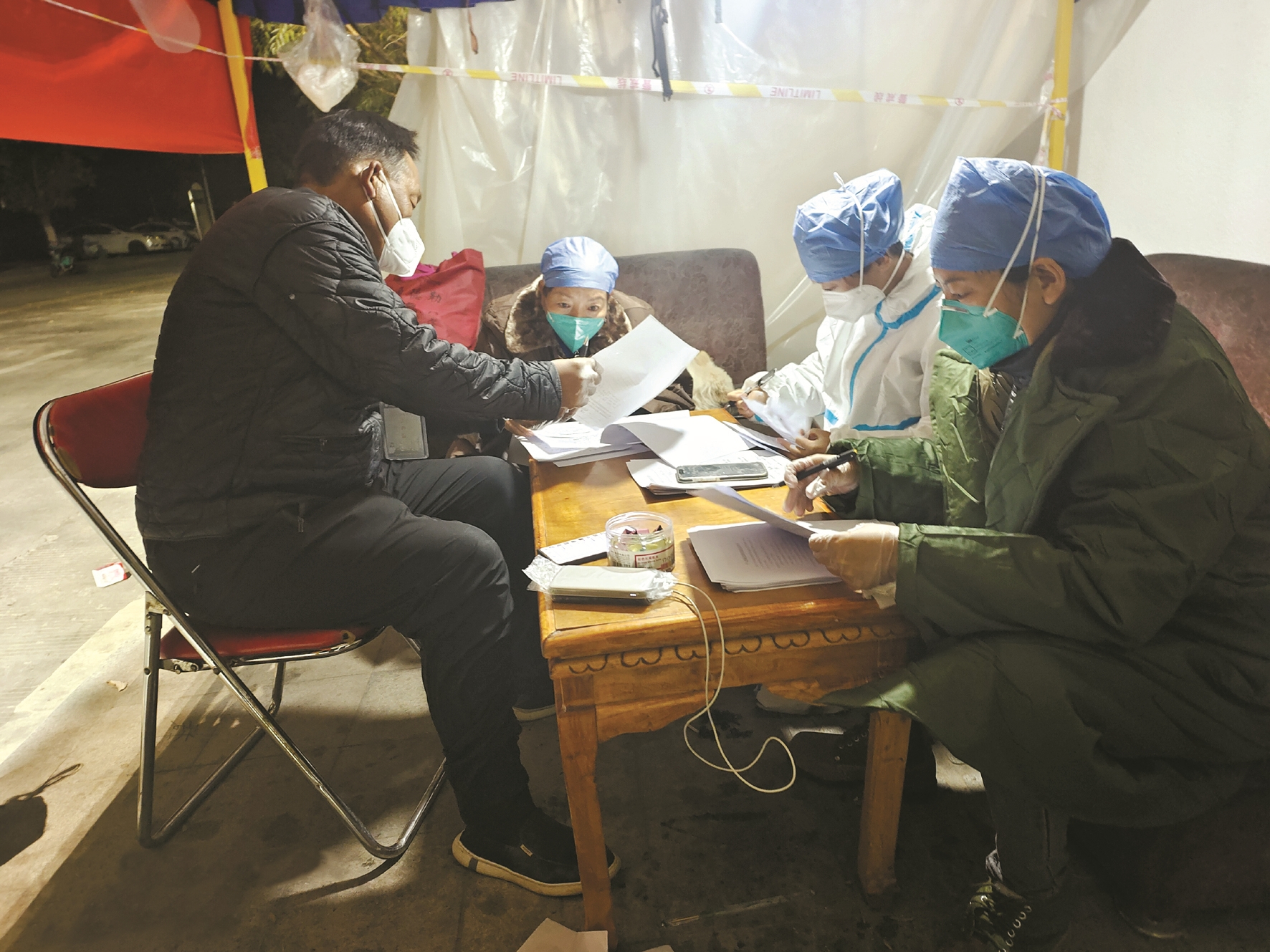 圖為(wei) 市體(ti) 育局駐柳梧村察古組工作組深夜統計信息。(由市體(ti) 育局提供)