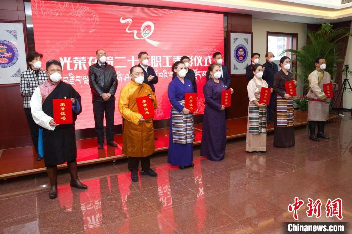 圖為(wei) 座談會(hui) 上為(wei) 光榮在院工作20周年以上的職工頒發榮譽證書(shu) 。 中國藏學研究中心供圖