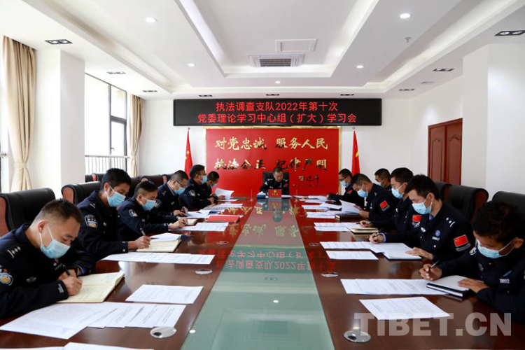 圖為(wei) 西藏邊檢總站執法調查支隊黨(dang) 委理論學習(xi) 中心組專(zhuan) 題學習(xi) 黨(dang) 的二十大精神 攝影:劉明陽