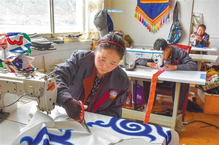 圖為(wei) “雙創”孵化基地的格拉夏手工業(ye) 有限責任公司員工在製作帳篷。記者 劉楓 攝