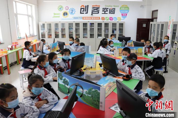 在天祝縣天師附小智慧教室內(nei) ,農(nong) 牧區的孩童“觸網”感知外麵的世界。 天祝縣委宣傳(chuan) 部供圖
