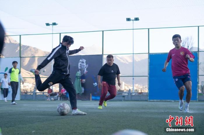 圖為(wei) 12月12日,拉薩市城關(guan) 區仙足島室外足球場裏,市民正在踢球。 中新社記者 貢嘎來鬆 攝