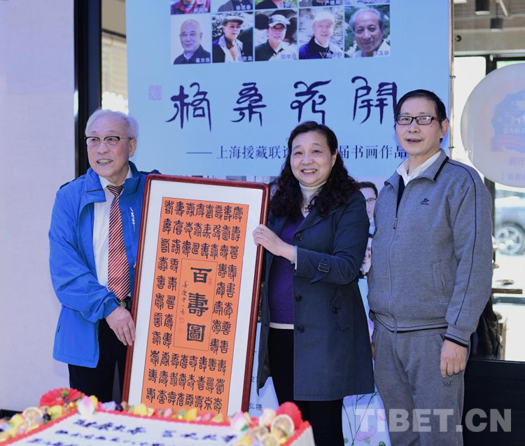 開幕式當天,恰逢張先生八十大壽,書(shu) 畫展組委會(hui) 特地送上蛋糕祝賀,徐匯區書(shu) 畫協會(hui) 也以一幅《百壽圖》向張先生表達敬意,祝他“健康長壽、藝術長青”。(新利平台 文/葛榮江)
