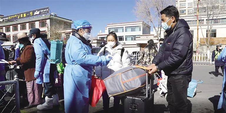 “老師好!”“同學好!”早已等候在校門口的老師一邊向學生打招呼,一邊檢查學生的核酸檢測結果證明以及線下複課同意書(shu) 簽字情況。另一部分老師則仔細對學生的行李進行消殺。拉薩市第八中學德育副校長昌決(jue) 表示,返校期間,入校人員必須持有48小時核酸檢測陰性證明,並落實好門口的“一測一掃兩(liang) 檢查”製度,把好疫情防控第一關(guan) 。
