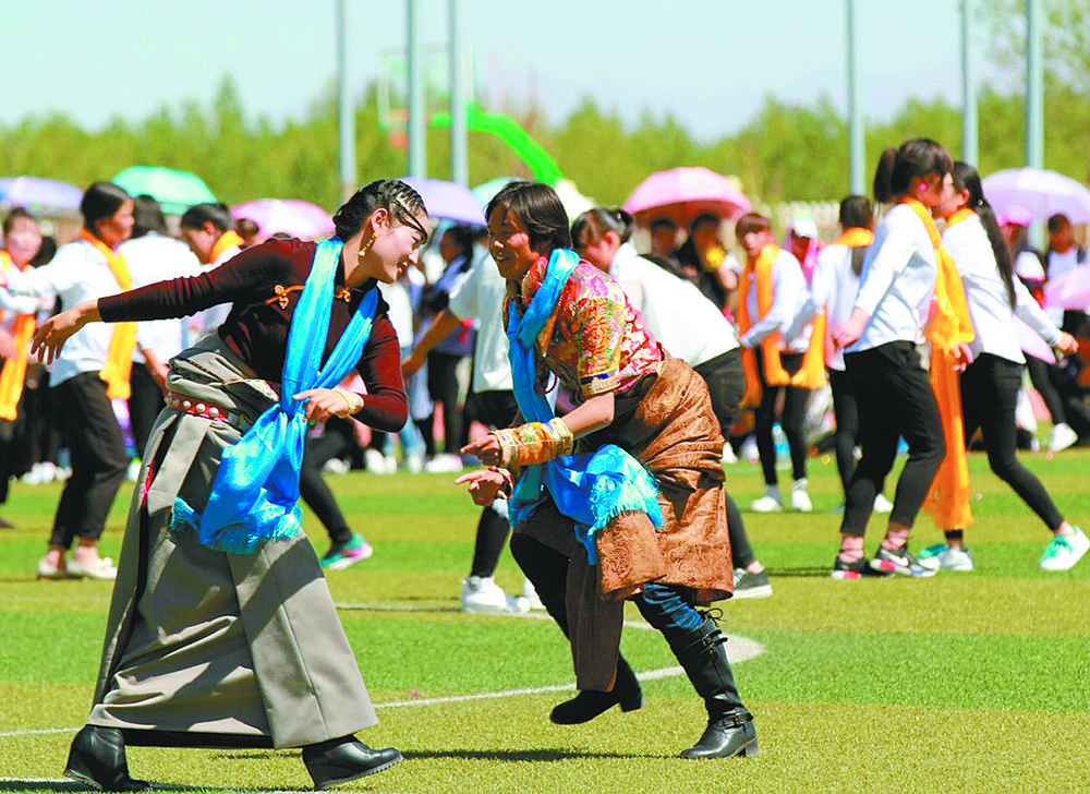 民族集體(ti) 舞大賽現場。青海柴達木職業(ye) 技術學院供圖