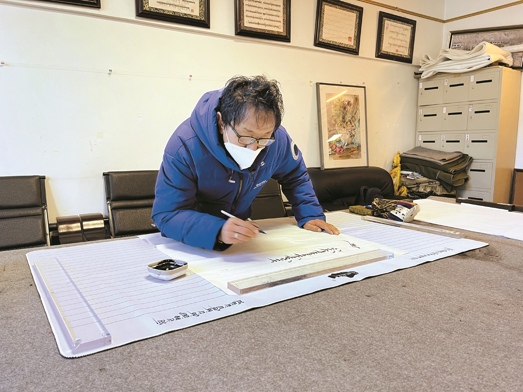 “作為(wei) 一名書(shu) 法藝術家,我在近兩(liang) 個(ge) 月的居家時間裏,認真學習(xi) 了黨(dang) 的二十大精神,在學習(xi) 的同時以書(shu) 法的形式將黨(dang) 的二十大精神更好地傳(chuan) 達給群眾(zhong) 。作為(wei) 一名政協委員、藝術家代表,會(hui) 發揮好政協委員的職責和義(yi) 務,為(wei) 廣大政協委員和藝術團成員做好表率。”市書(shu) 法家協會(hui) 副主席南傑旺紮說。