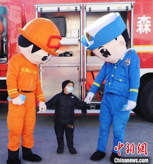 森林消防隊員組織小朋友體(ti) 驗消防車。 林芝市森林消防供圖