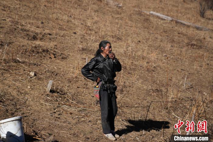 圖為(wei) 丹增培楚在牧場使用對講機。劉冉陽 攝
