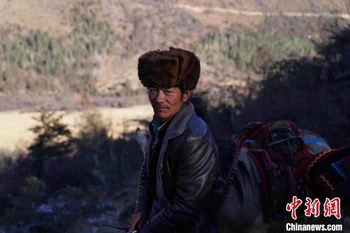 正值寒冬,丹增培楚牽著騾馬隊從(cong) 香格裏拉高原牧場的群山之間緩緩走來,馬幫的銅鈴發出叮叮當當的樂(le) 章。