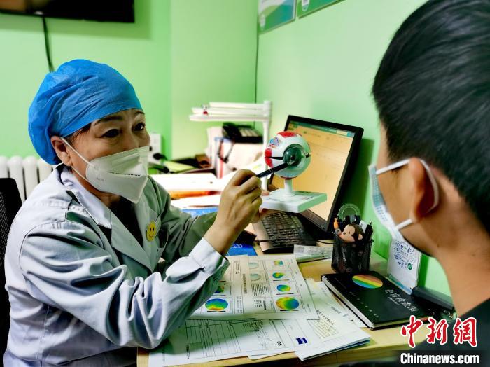圖為(wei) 青海省一醫療機構眼科專(zhuan) 家向患者講解近視問題。 張添福 攝