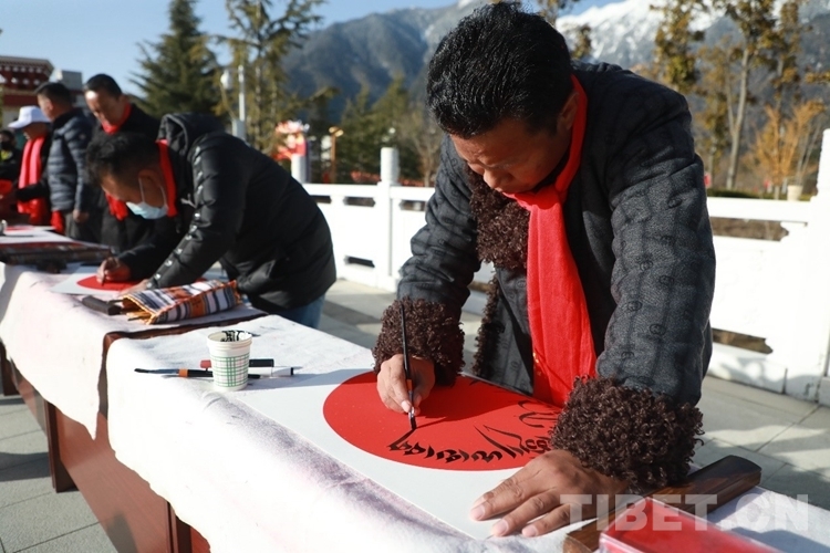 在林芝市藏醫院工作的巴桑次仁,是林芝市文聯書(shu) 法家協會(hui) 會(hui) 員。當天一大早,林芝市文聯書(shu) 法家協會(hui) 的各位書(shu) 法家揮毫潑墨,不停地為(wei) 群眾(zhong) 寫(xie) 下新年祈福和願望。現場群眾(zhong) 簇擁觀摩,與(yu) 書(shu) 法家們(men) 認真交流,臉上不時揚起幸福的笑容。據悉,活動當天,書(shu) 法家協會(hui) 共送出100餘(yu) 副春聯、150餘(yu) 幅字畫。