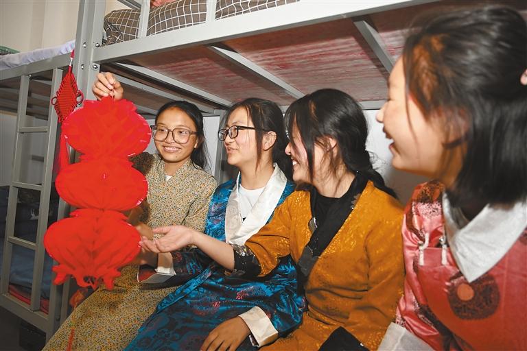 圖為(wei) 西藏自治區人民政府駐格爾木辦事處中學的學生歡度藏曆新年。記者 王敏 攝