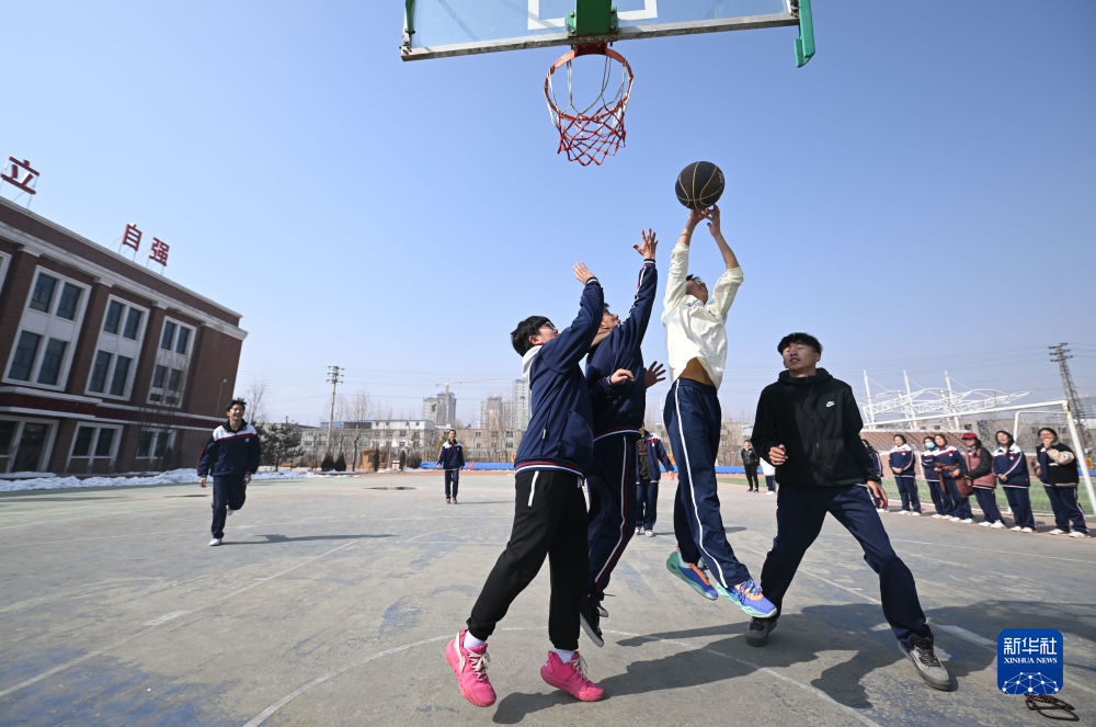 2月23日,西寧果洛中學學生在體(ti) 育課上打籃球。新華社記者 張龍 攝