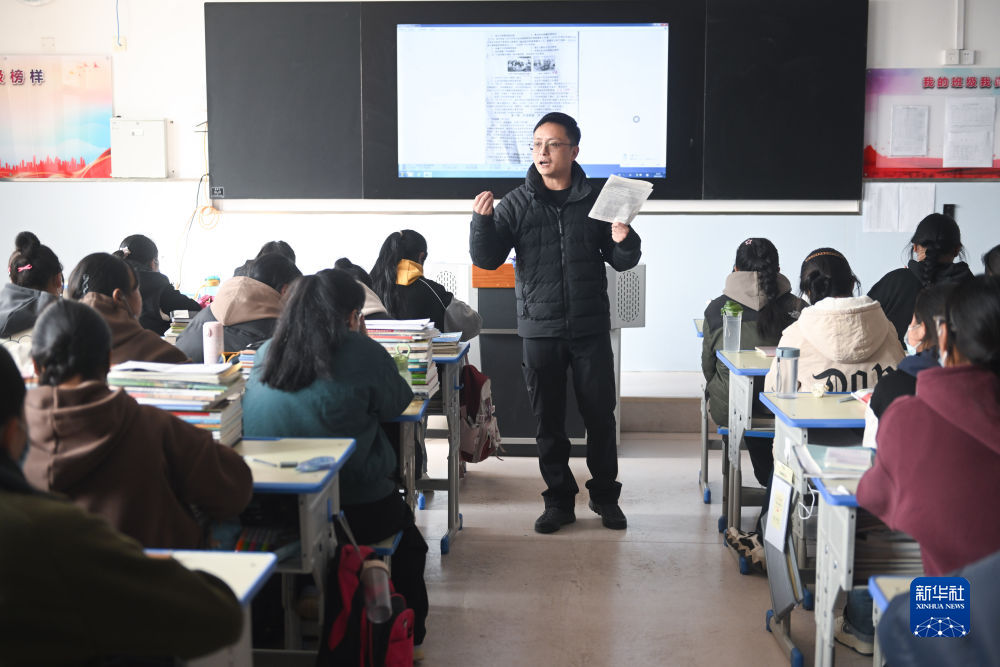 2月23日,上海援青教師鍾祖華在給學生上課。新華社記者 張龍 攝
