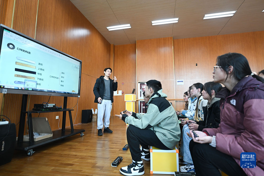 2月23日,上海援青教師闞延俊在給學生上音樂(le) 課。新華社記者 張龍 攝