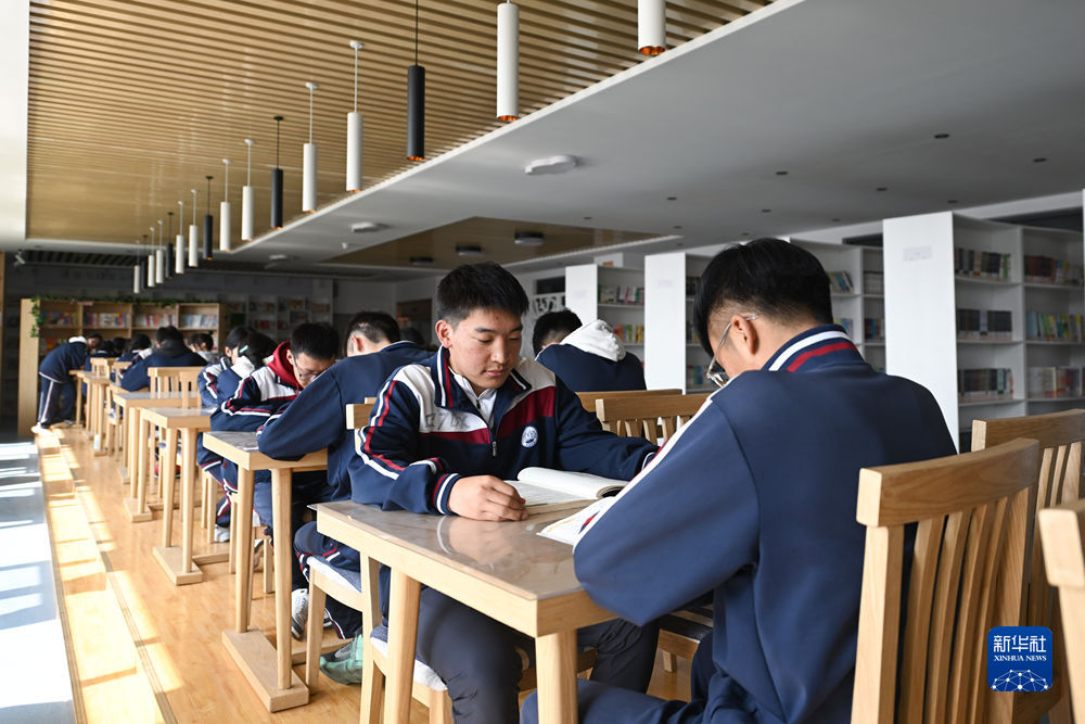 2月23日,西寧果洛中學學生在圖書(shu) 室內(nei) 閱讀。新華社記者 張龍 攝