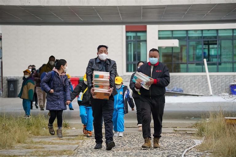 在拉薩市第八中學校門口,學生們(men) 滿懷希冀與(yu) 欣喜,來到闊別已久的校園,校園內(nei) 恢複了往日的熱鬧。學生們(men) 在家長的陪同下背著行囊,拖著行李箱回到各自寢室。衛生大掃除是必不可少,他們(men) 對床鋪和個(ge) 人用品進行了整理。隨後,同學們(men) 有序完成了新書(shu) 本的領取,感受著翻開書(shu) 本泛出的陣陣墨香。與(yu) 自己的姓名一起簽在書(shu) 本扉頁的還有新學期的美好願景。
