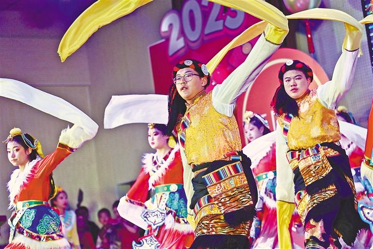 圖為(wei) 學生在藏曆新年團拜活動上表演藏族舞蹈。 新華社記者 李一博 攝