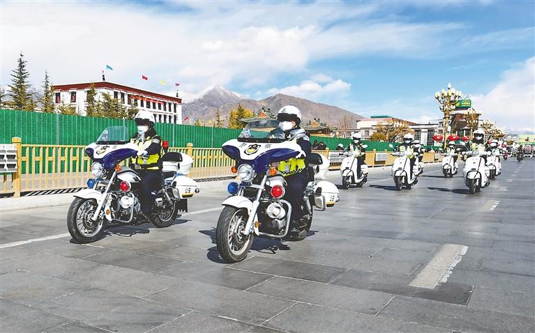拉薩市公安局交警支隊城北大隊女子中隊交警颯爽英姿。記者 唐斌 攝