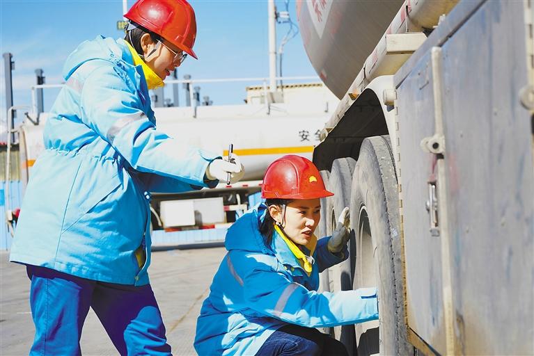 中國石油運輸西藏分公司女員工在養(yang) 護車輛。記者 次仁平措 攝