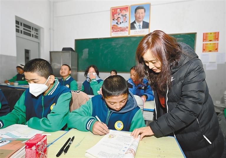 西格辦中學女教師給學生輔導功課。 記者 王敏 攝