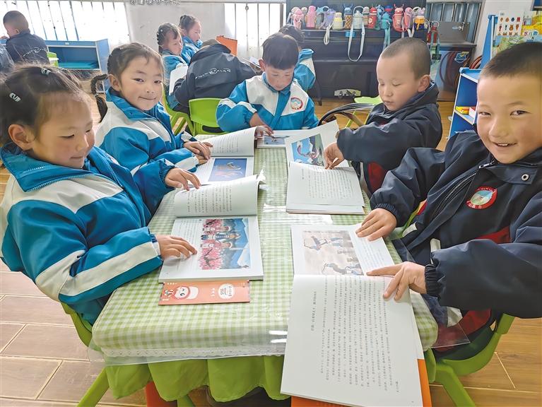 圖為(wei) 孩子們(men) 興(xing) 致勃勃地閱讀獲贈的書(shu) 籍。