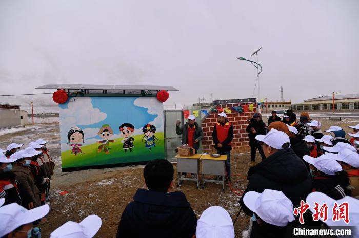 這份“禮物”約有半個(ge) 標準集裝箱那麽(me) 大,它的屋頂裝有幾塊太陽能光伏板,這間鐵皮小屋從(cong) 杭州出發,途徑安徽、河南、陝西、甘肅、青海,跋涉近4000公裏來到那曲,為(wei) 學校師生帶來了幹淨的飲用水。