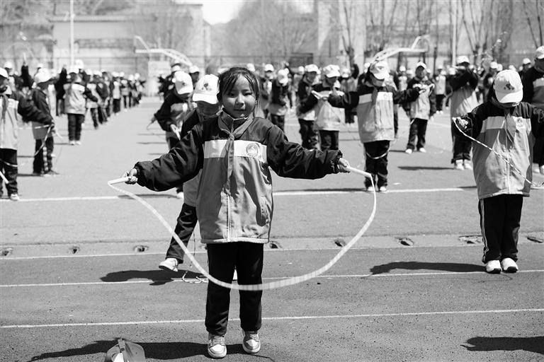 活動現場,同學們(men) 拿著跳繩來到操場上,調整好隊形,和著歡快的音樂(le) 節拍,跟著老師的節奏進行跳繩練習(xi) ,各班班主任積極鼓勵學生做到“人手一繩”並跟班指導。學生們(men) 舞動著彩繩,歡快地跳躍,成為(wei) 學校大課間一道靚麗(li) 的風景。
