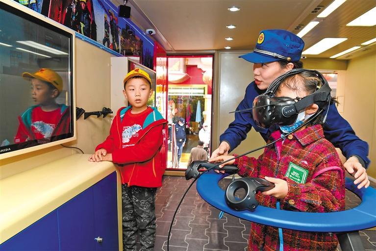 消防隊員借助VR模擬係統,為(wei) 孩子們(men) 講解防火防災知識。記者 丹增群培 攝